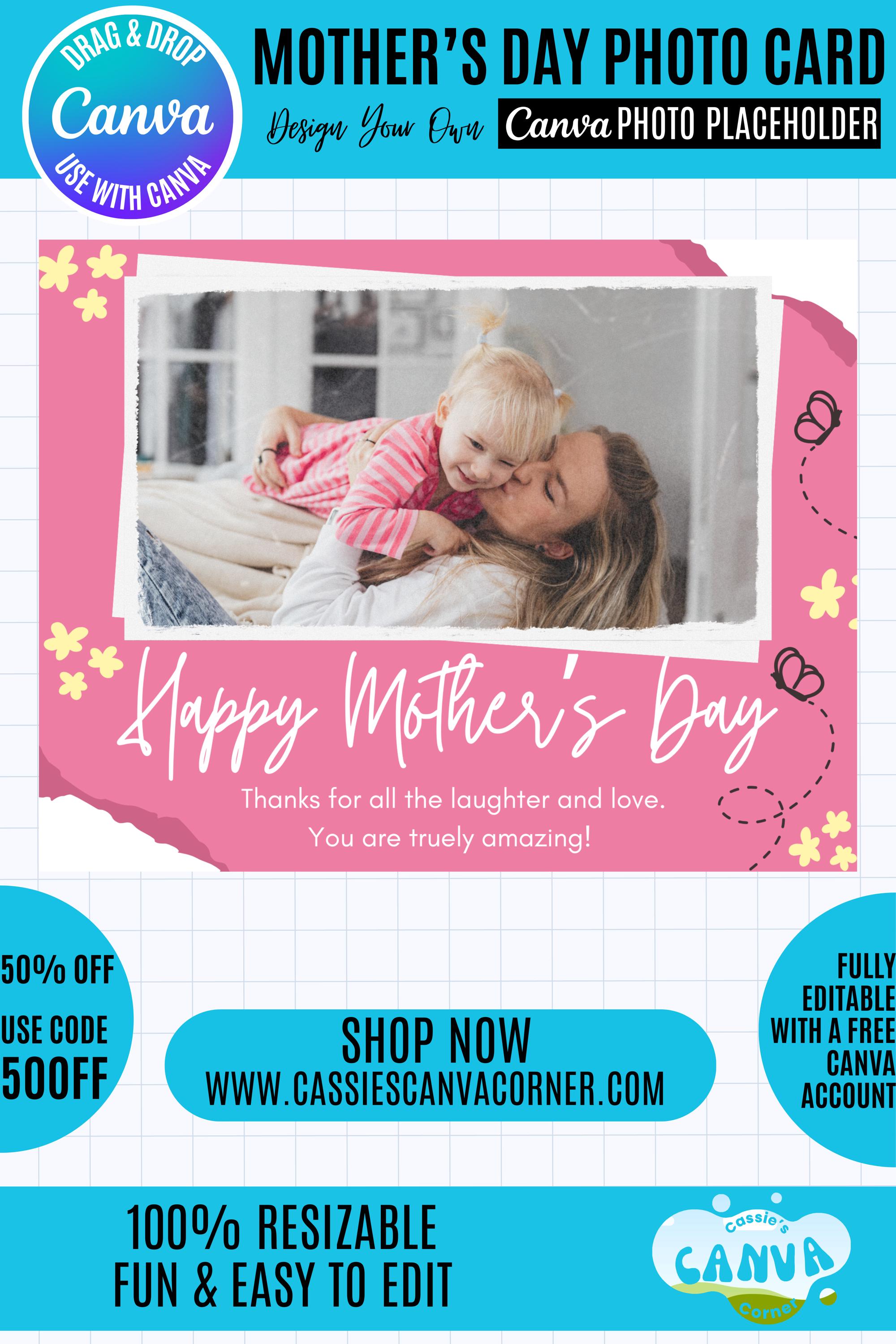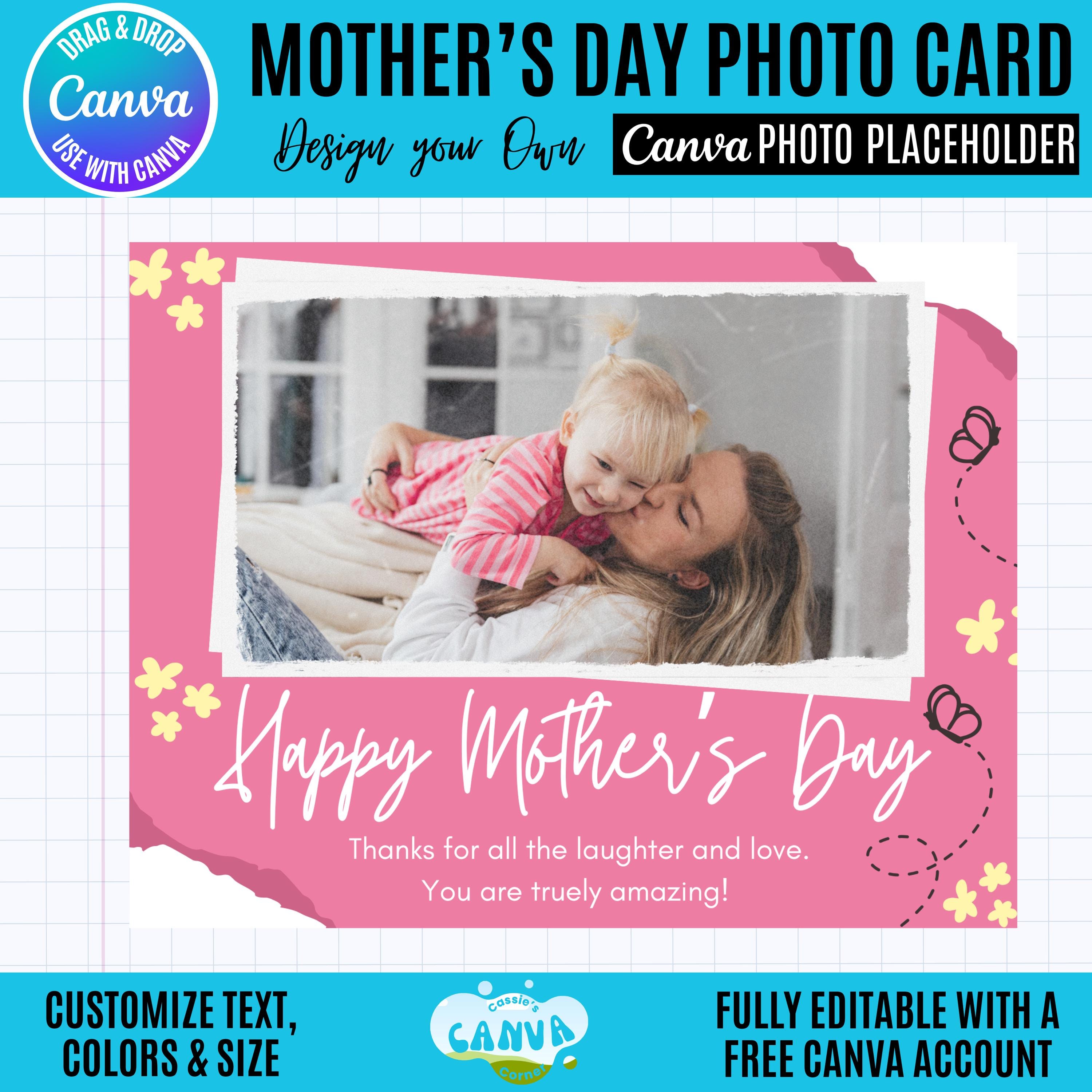 Mother’s Day Photo Card Canva Template | Editable Printable Mom Card | Custom Picture Mother’s Day Card | Instant Download Digital Card