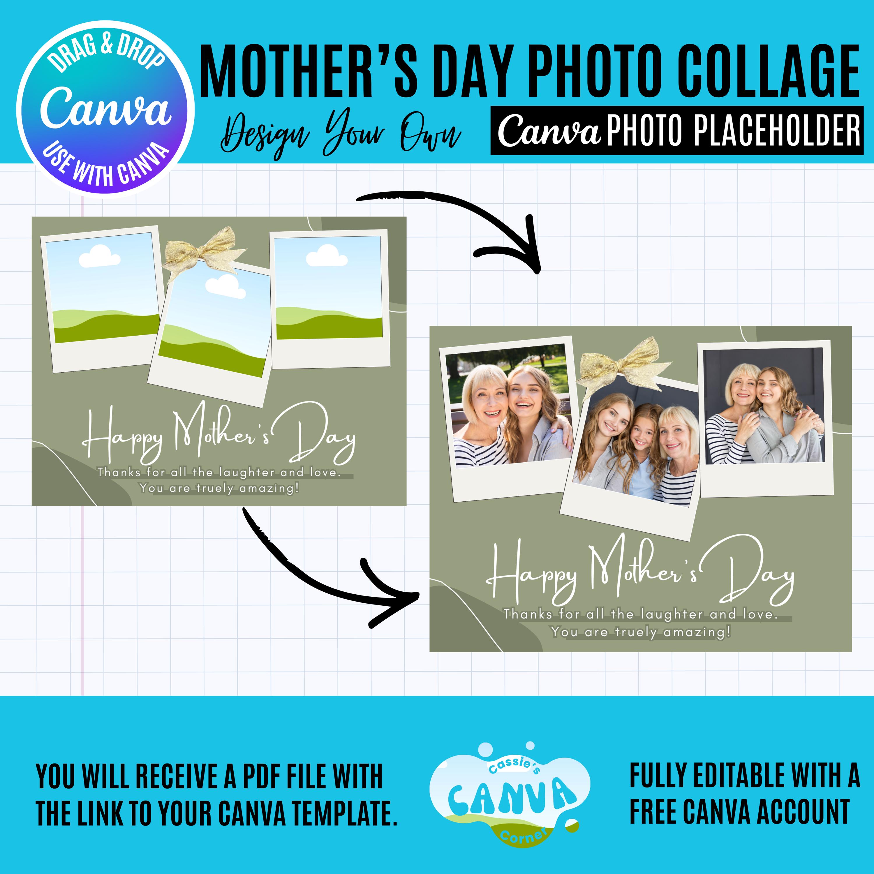 Create a heartfelt, keepsake-worthy Mother’s Day gift with this Canva-editable photo collage bundle featuring a beautiful style design for every special mom and grandma 💖