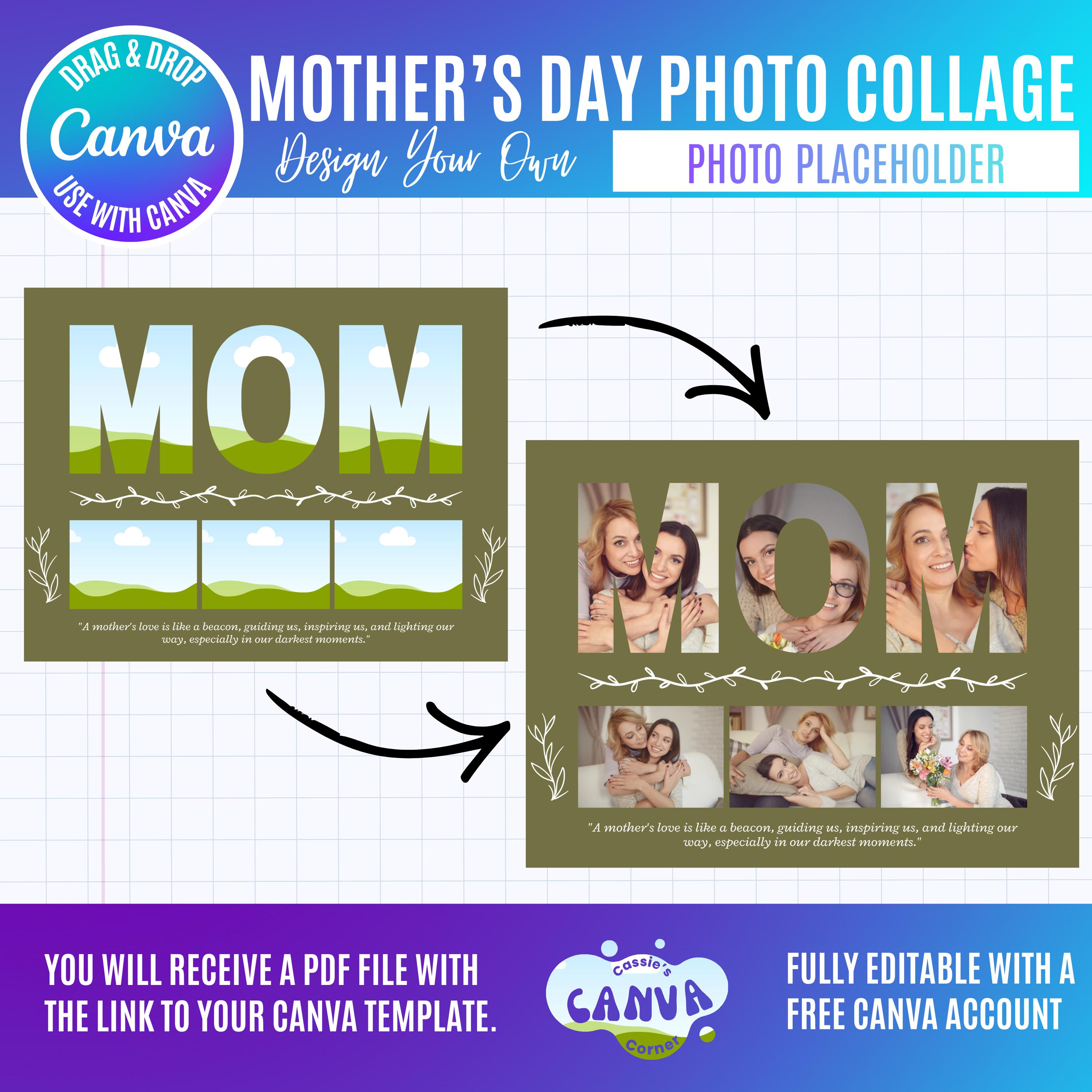 Mother's Day Photo Collage Canva Template, Canva Coquette Mom, Gift for Mother's Day, Nana, Gigi, Mimi grandma gift (Digital Download