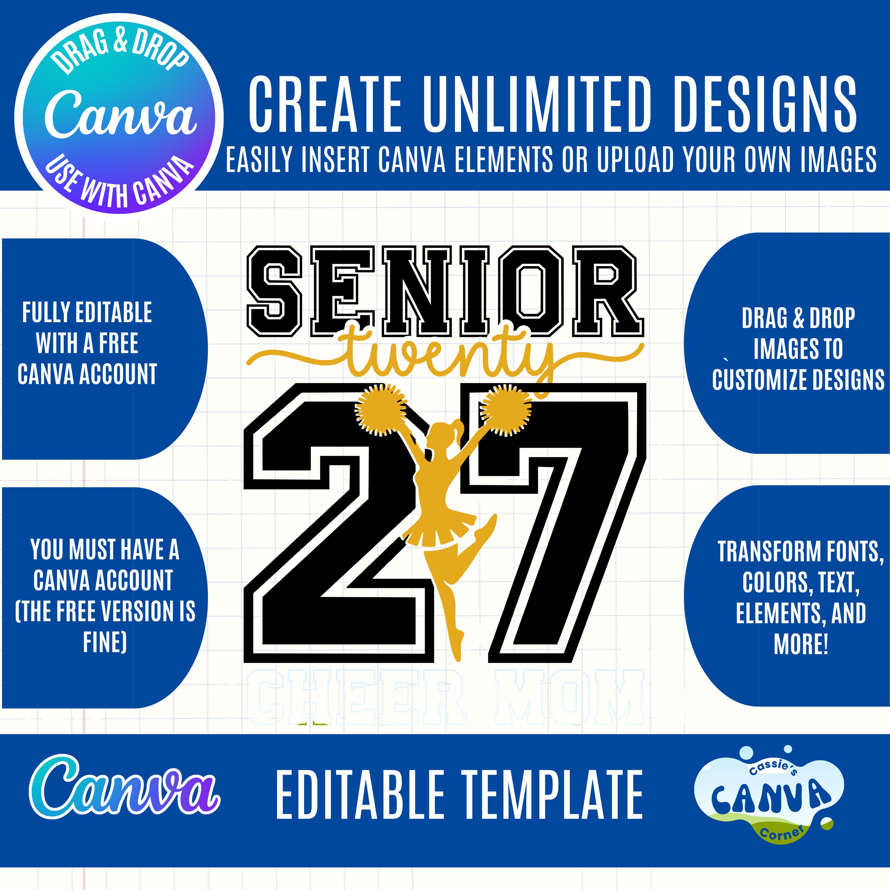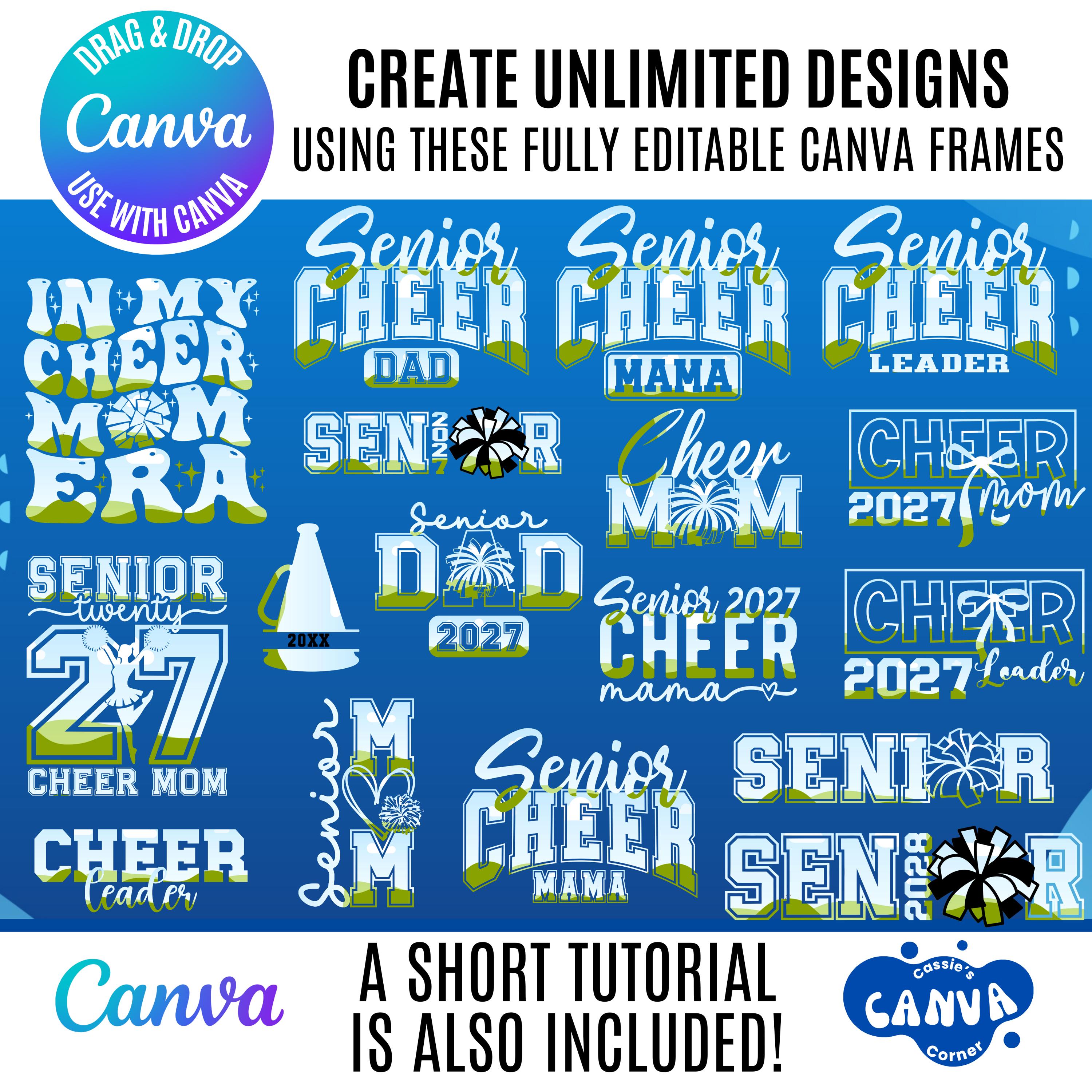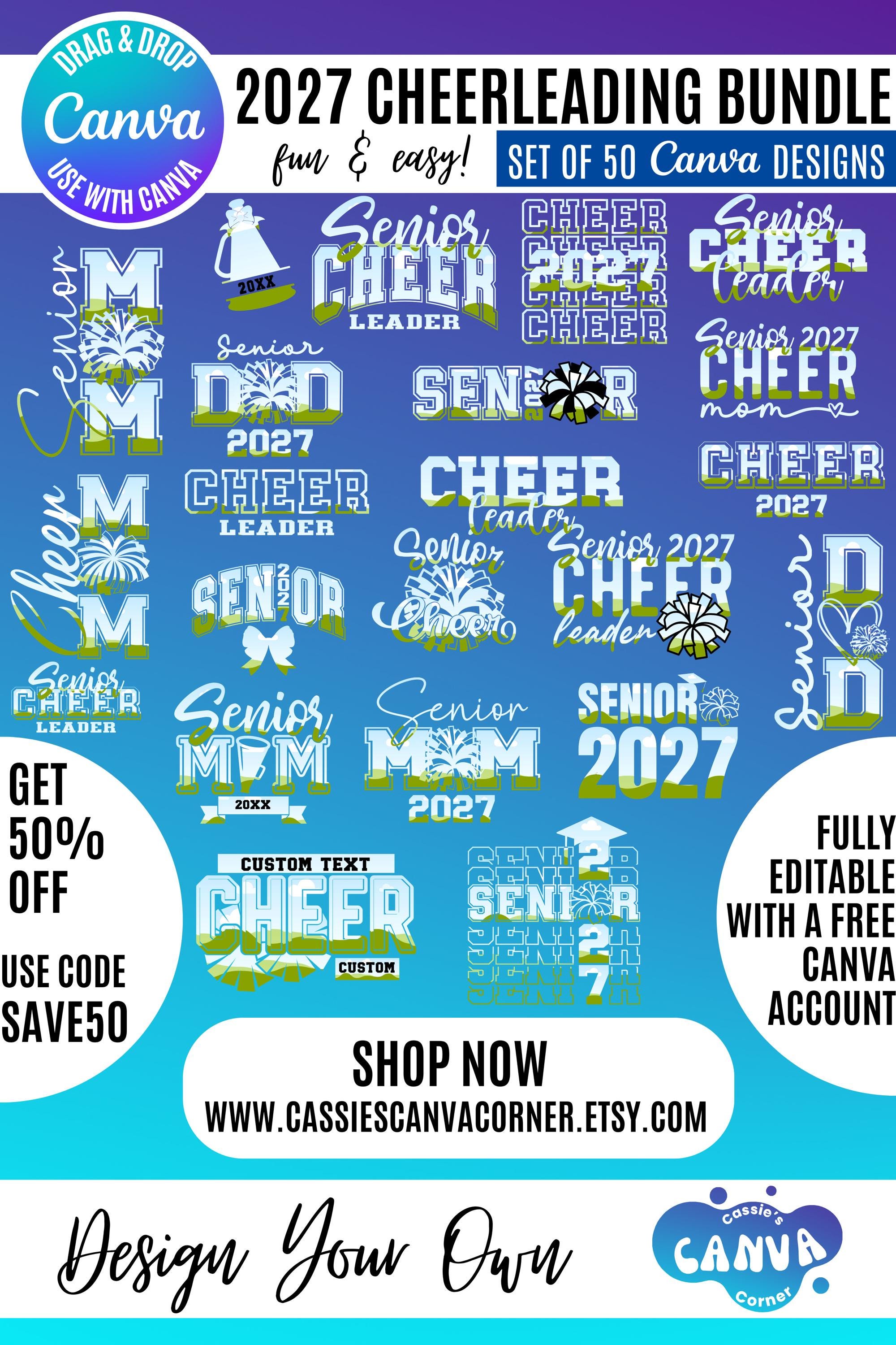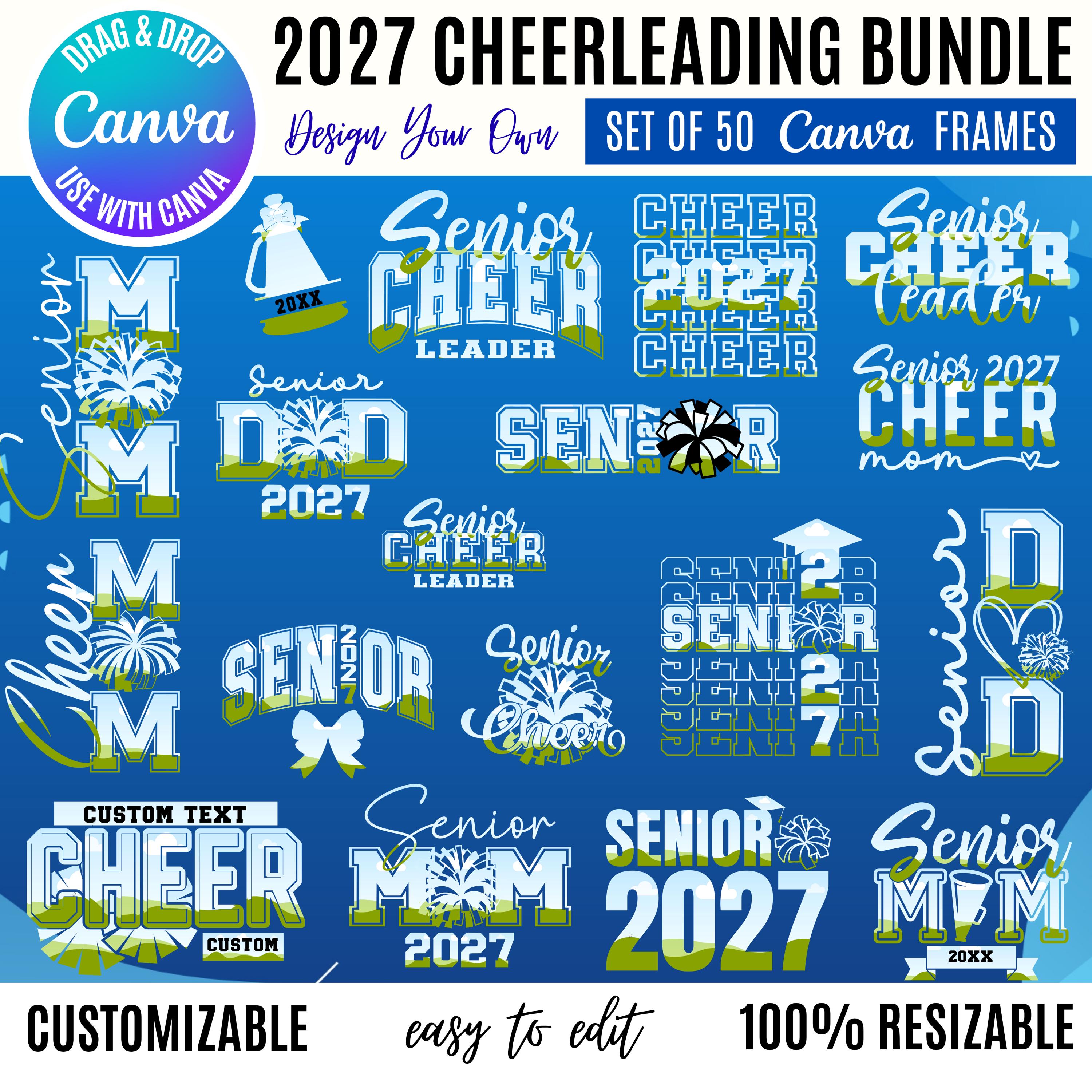 Senior Cheerleading Canva Bundle | Class of 2028 Cheer Mom Dad & Cheerleader Editable Templates | Senior Year Spirit Design Elements