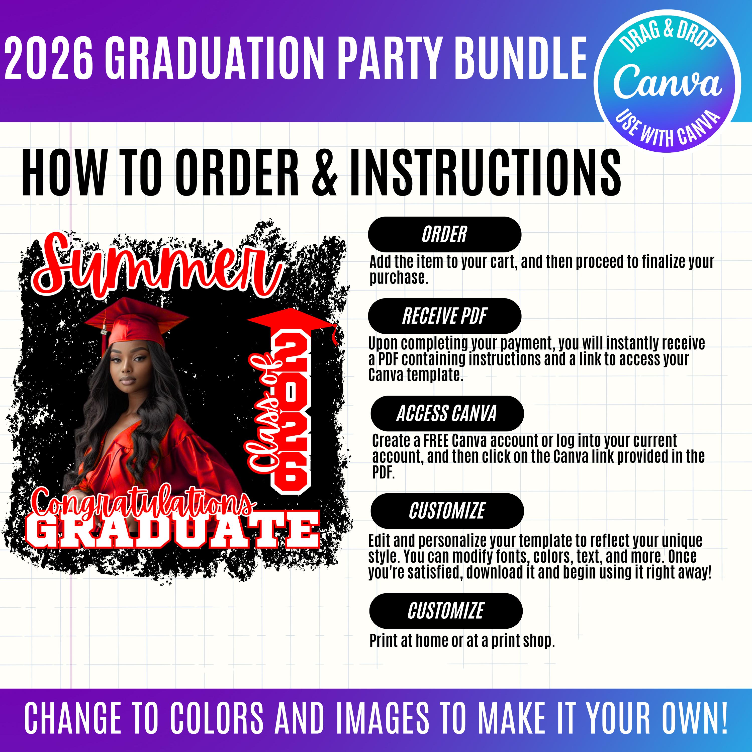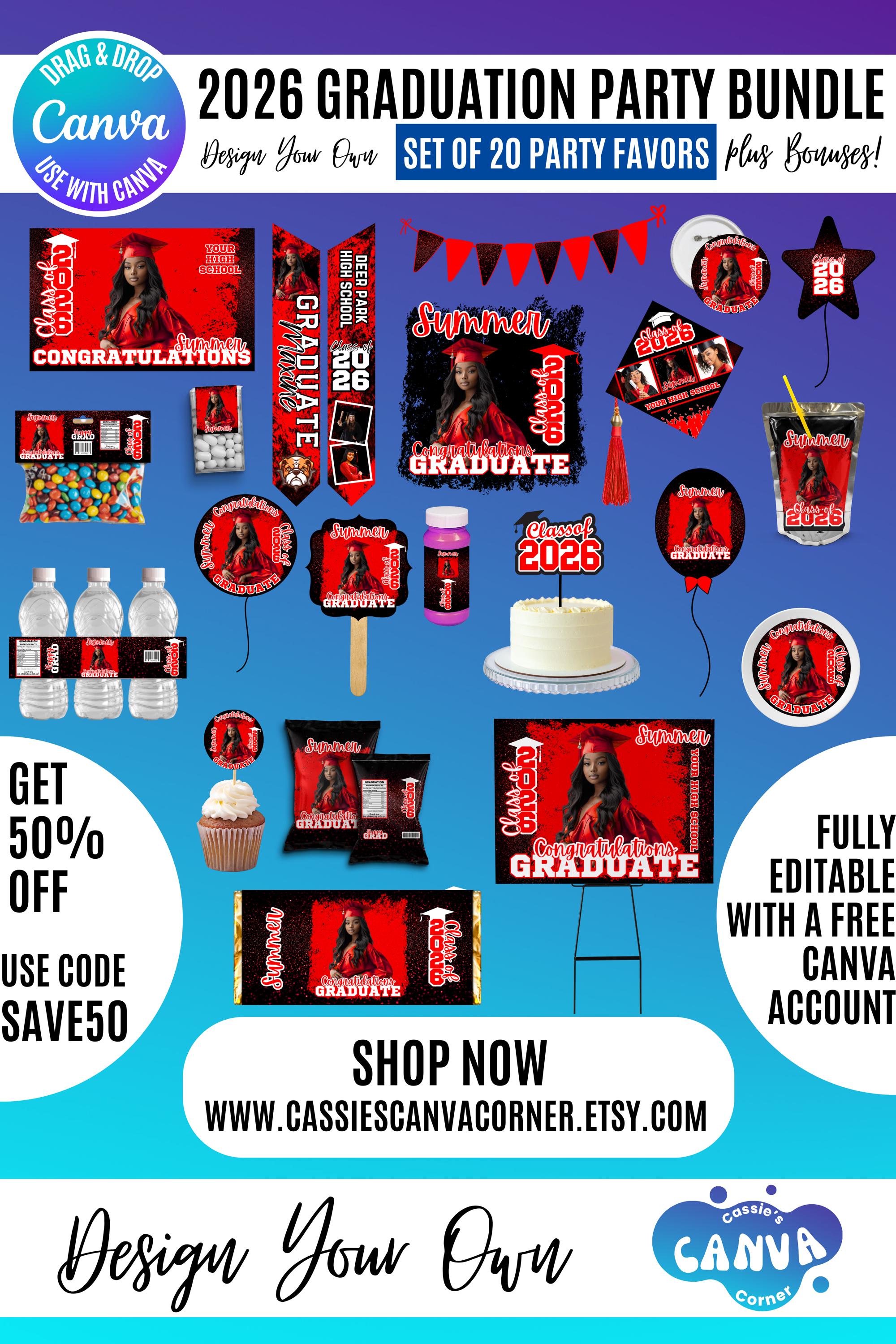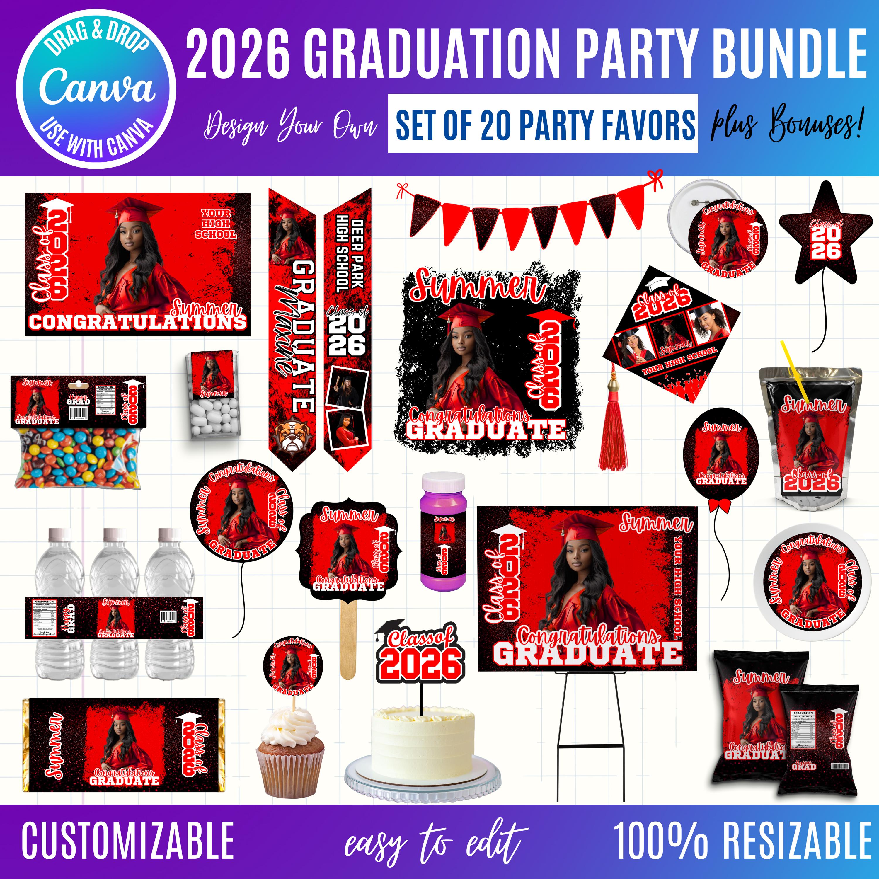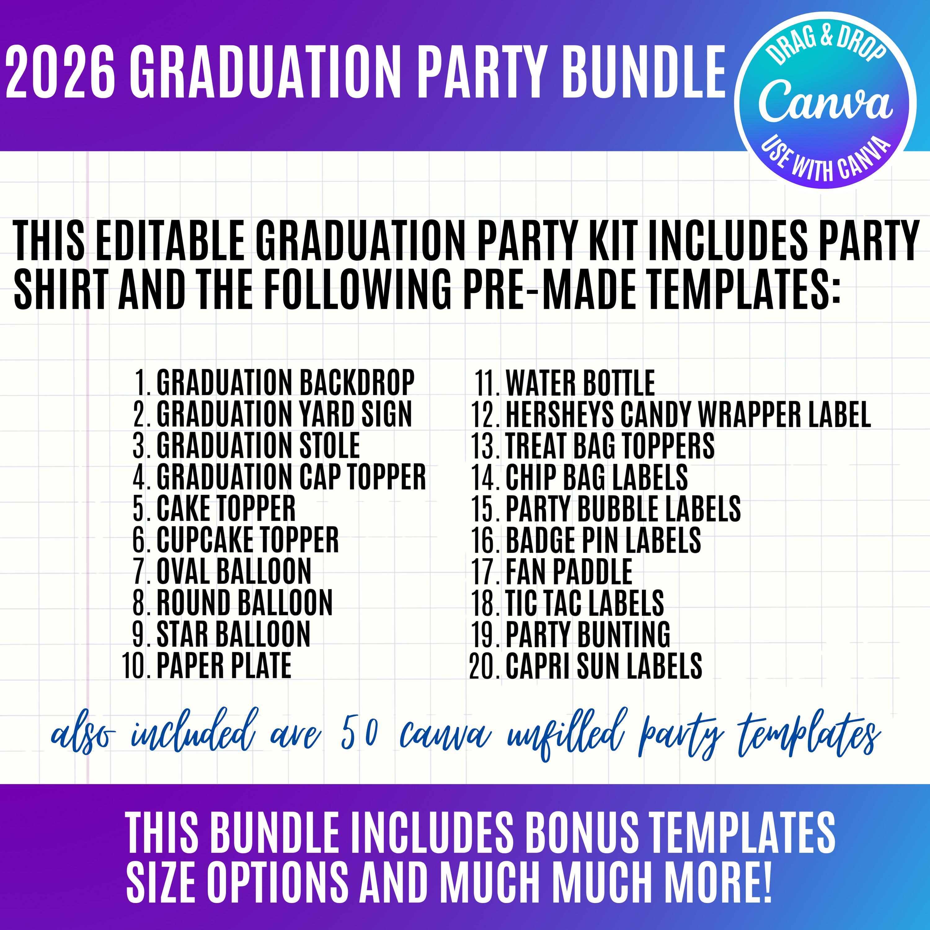 Graduation 2026 Canva Bundle Template, Editable Grad Party Decor Kit, Pre-Made Senior Designs, Canva graduation party favors, Balloons, Bunting, Yard Sign, Cap Topper & More, Canva graduation bundle, 2026 graduation canva bundle, 2026 Senior graduation party favors, party favors bundle, graduation 2026, grad party bundle, canva graduation, editable grad decor, class of 2026, graduation template, grad party favors, senior 2026 decor, graduation cap topper, grad backdrop template, graduation bundle, printable grad decor, grad party kit, Graduation 2026 template bundle, editable graduation party decorations, Canva grad party kit, Class of 2026 party favors, DIY graduation decor templates, printable graduation decorations, senior graduation bundle Canva, graduation cap topper template, graduation party backdrop template, customizable grad designs