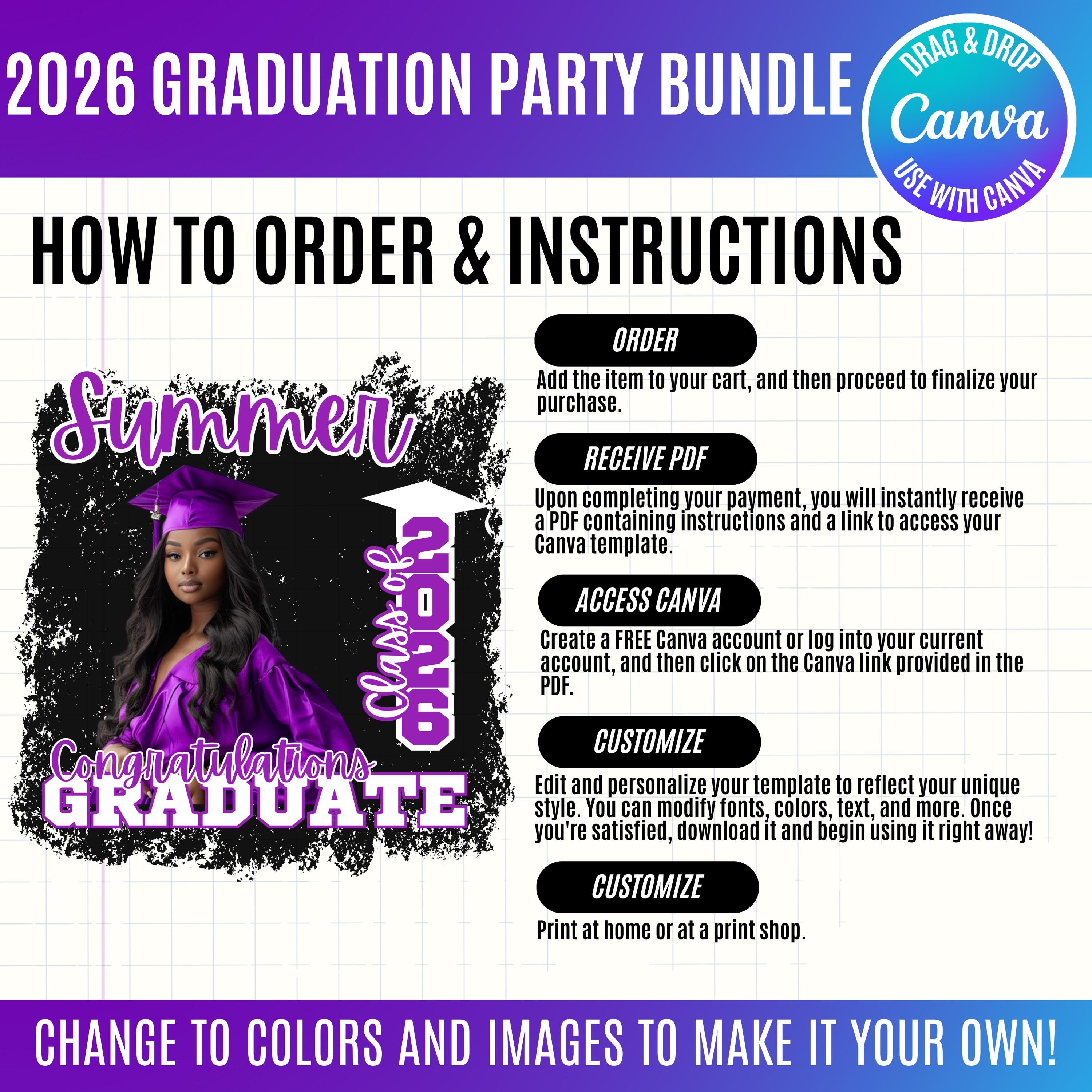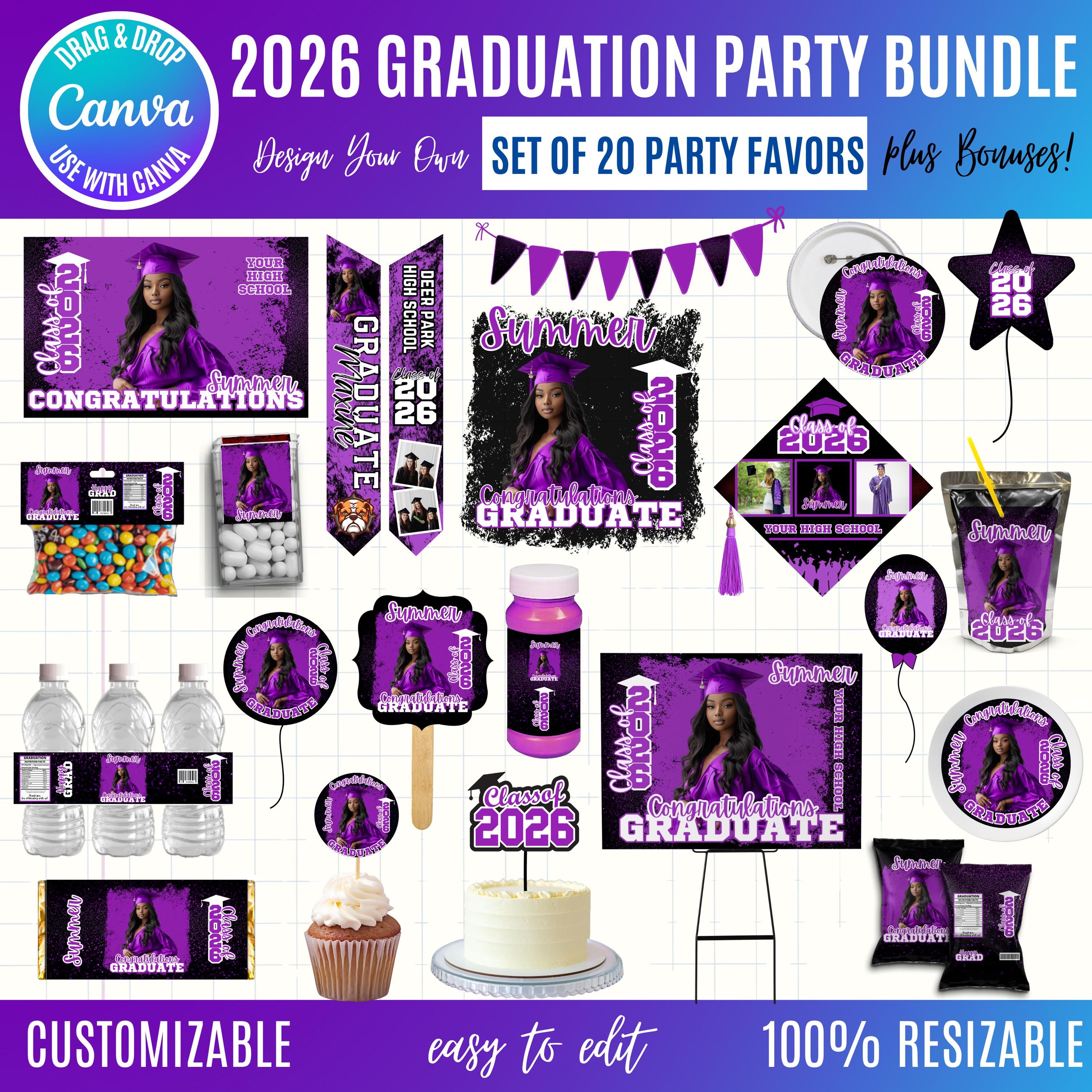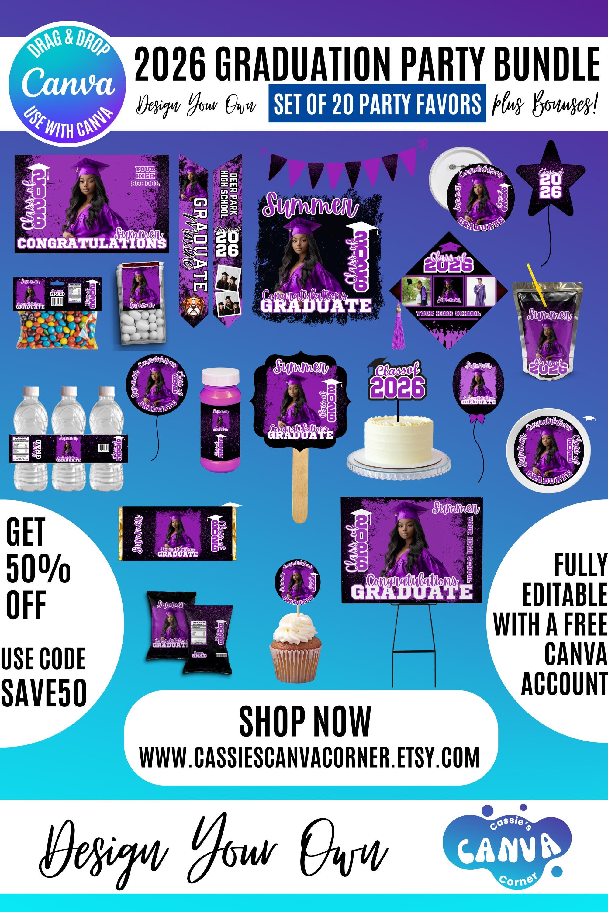 Graduation 2026 Canva Bundle Template, Editable Grad Party Decor Kit, Pre-Made Senior Designs, Canva graduation party favors, Balloons, Bunting, Yard Sign, Cap Topper & More, Canva graduation bundle, 2026 graduation canva bundle, 2026 Senior graduation party favors, party favors bundle, graduation 2026, grad party bundle, canva graduation, editable grad decor, class of 2026, graduation template, grad party favors, senior 2026 decor, graduation cap topper, grad backdrop template, graduation bundle, printable grad decor, grad party kit, Graduation 2026 template bundle, editable graduation party decorations, Canva grad party kit, Class of 2026 party favors, DIY graduation decor templates, printable graduation decorations, senior graduation bundle Canva, graduation cap topper template, graduation party backdrop template, customizable grad designs
