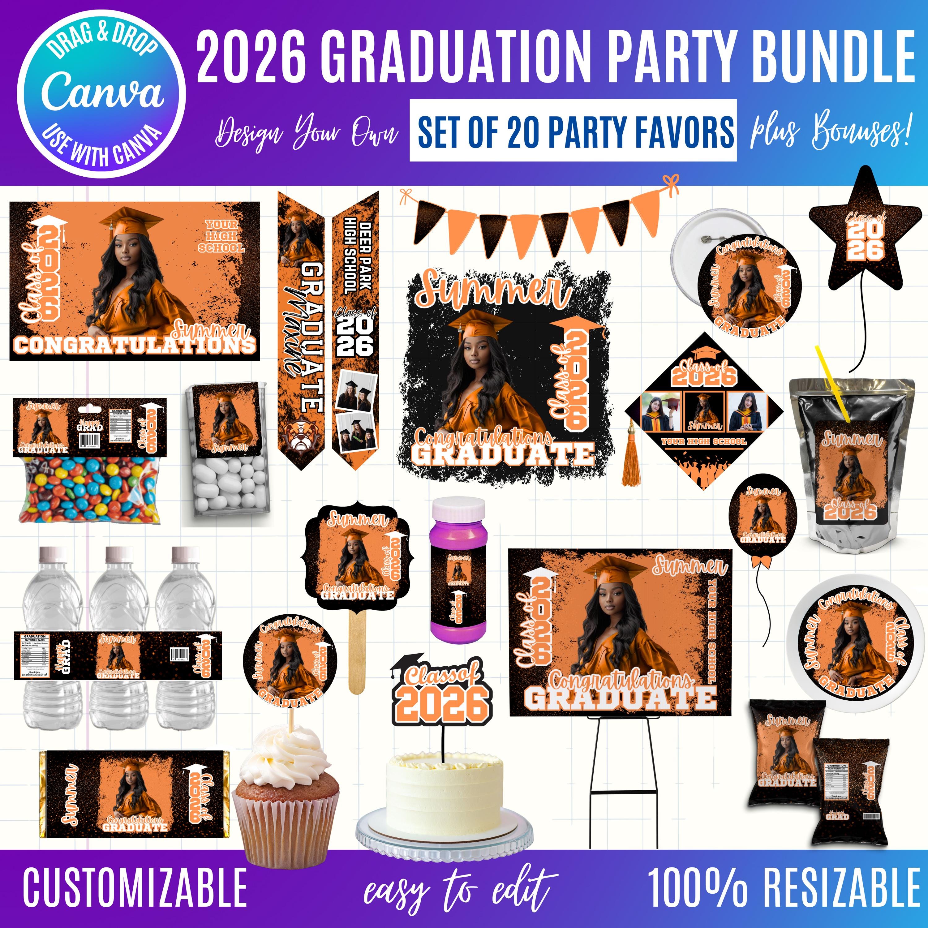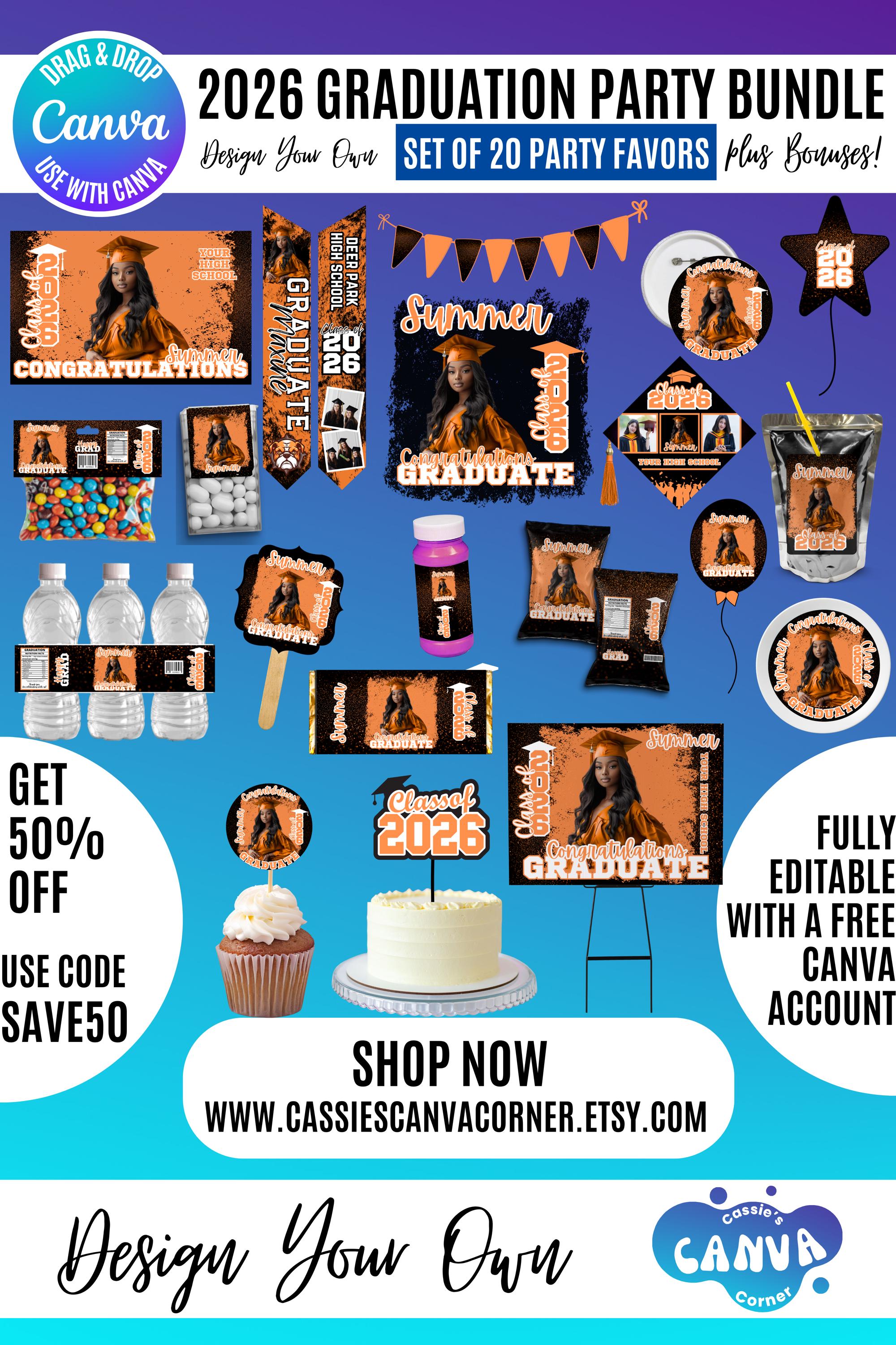Graduation 2026 Canva Bundle Template, Editable Grad Party Decor Kit, Pre-Made Senior Designs, Canva graduation party favors, Balloons, Bunting, Yard Sign, Cap Topper & More, Canva graduation bundle, 2026 graduation canva bundle, 2026 Senior graduation party favors, party favors bundle, graduation 2026, grad party bundle, canva graduation, editable grad decor, class of 2026, graduation template, grad party favors, senior 2026 decor, graduation cap topper, grad backdrop template, graduation bundle, printable grad decor, grad party kit, Graduation 2026 template bundle, editable graduation party decorations, Canva grad party kit, Class of 2026 party favors, DIY graduation decor templates, printable graduation decorations, senior graduation bundle Canva, graduation cap topper template, graduation party backdrop template, customizable grad designs