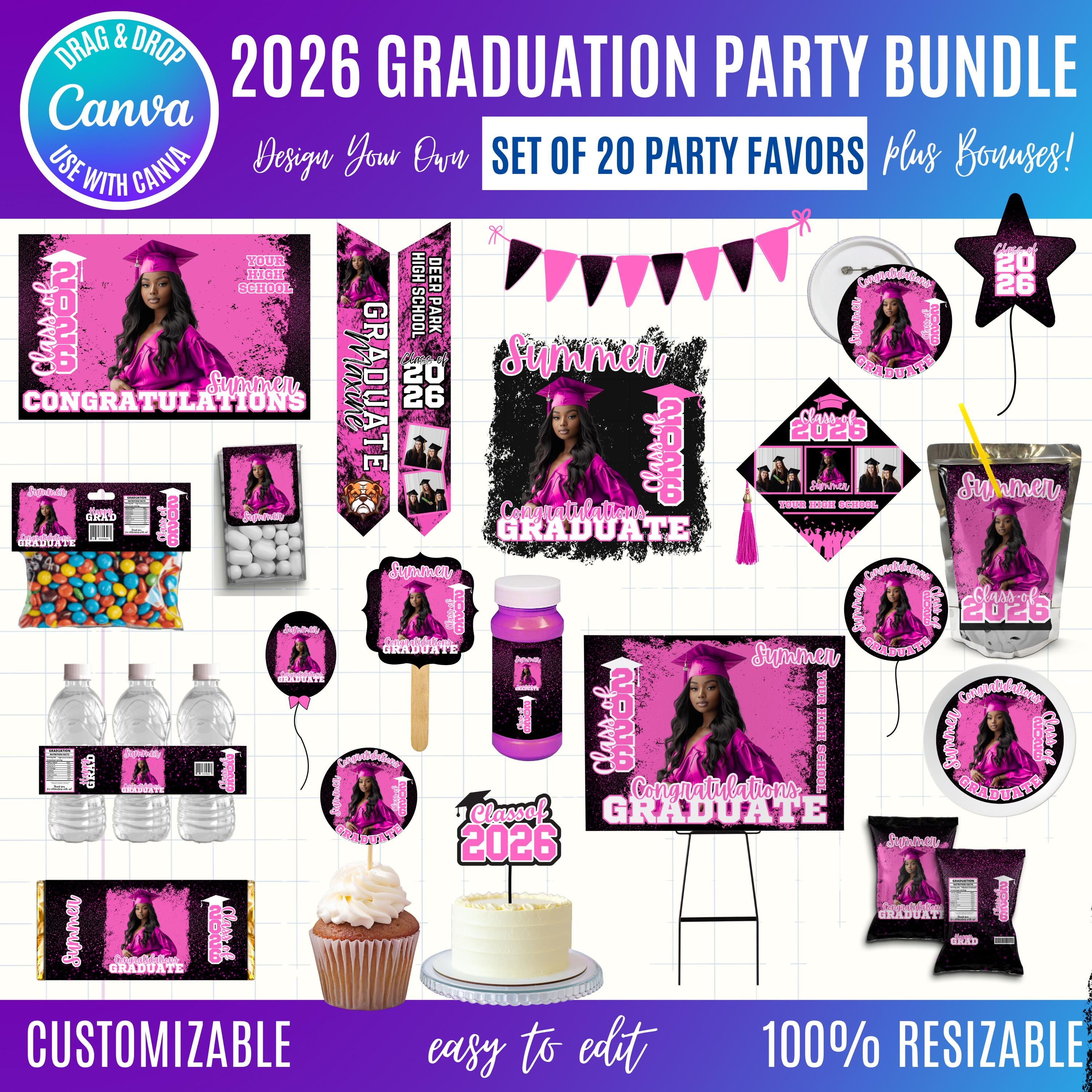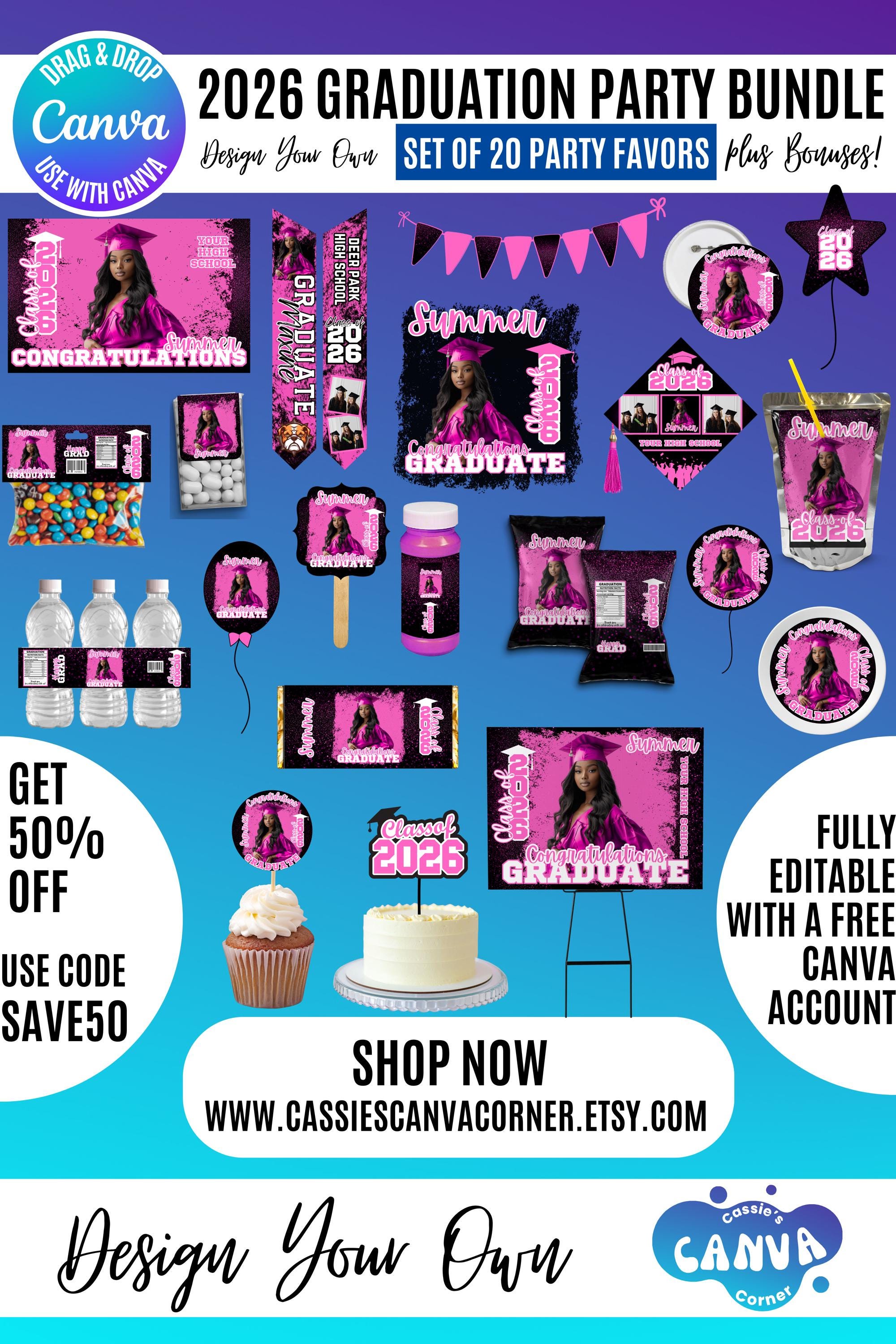 Graduation 2026 Canva Bundle Template, Editable Grad Party Decor Kit, Pre-Made Senior Designs, Canva graduation party favors, Balloons, Bunting, Yard Sign, Cap Topper & More, Canva graduation bundle, 2026 graduation canva bundle, 2026 Senior graduation party favors, party favors bundle, graduation 2026, grad party bundle, canva graduation, editable grad decor, class of 2026, graduation template, grad party favors, senior 2026 decor, graduation cap topper, grad backdrop template, graduation bundle, printable grad decor, grad party kit, Graduation 2026 template bundle, editable graduation party decorations, Canva grad party kit, Class of 2026 party favors, DIY graduation decor templates, printable graduation decorations, senior graduation bundle Canva, graduation cap topper template, graduation party backdrop template, customizable grad designs