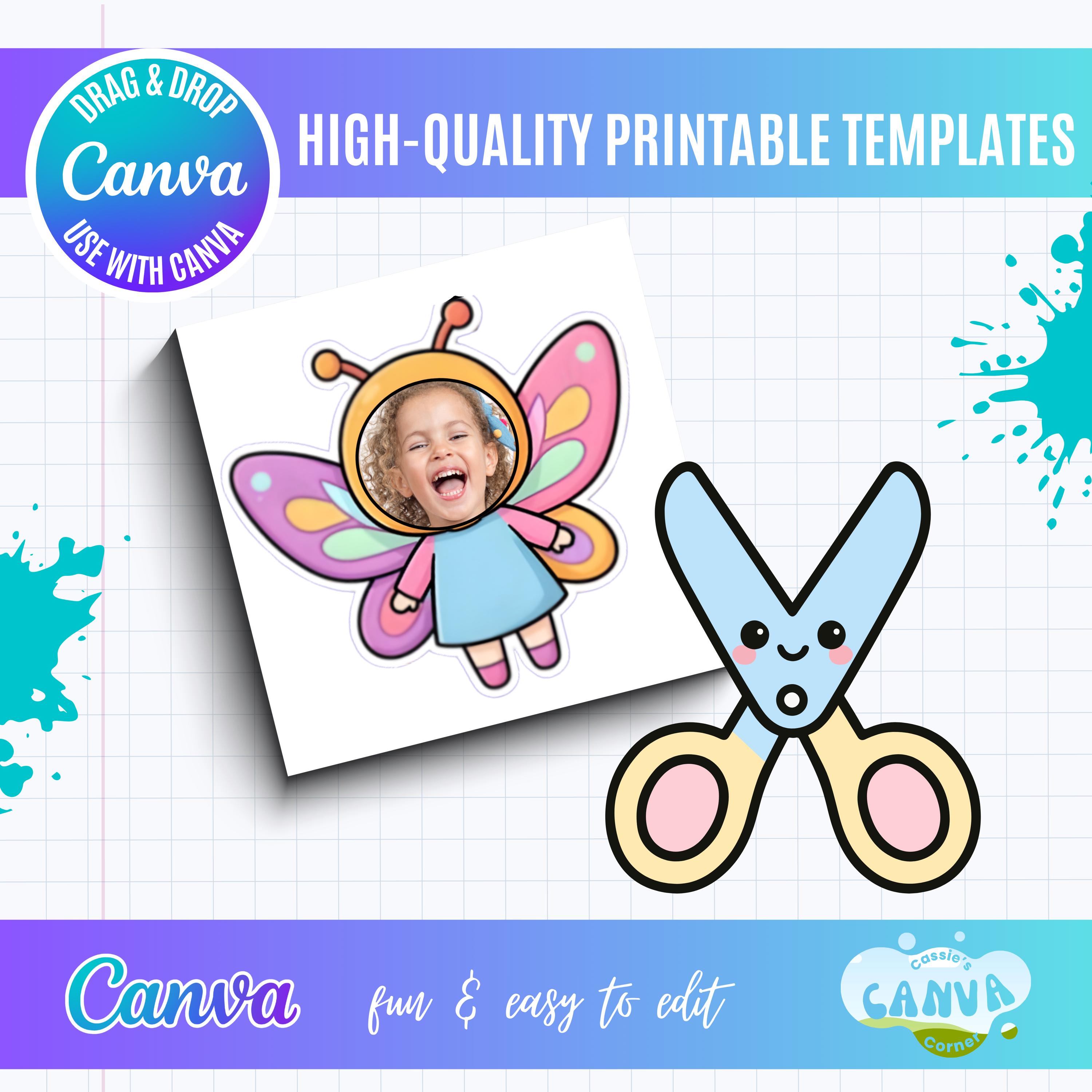 Spring Garden Friends Face Insert Canva Bundle | 30 Cute Bee Butterfly Flower Frog Turtle Caterpillar Templates | Kids Face Cutout Designs | Editable Canva, Spring Face Insert Canva Bundle, Cute Spring Characters for kids, Classroom Bulletin Board, Butterflies, Bees Kids Photo Face Inserts