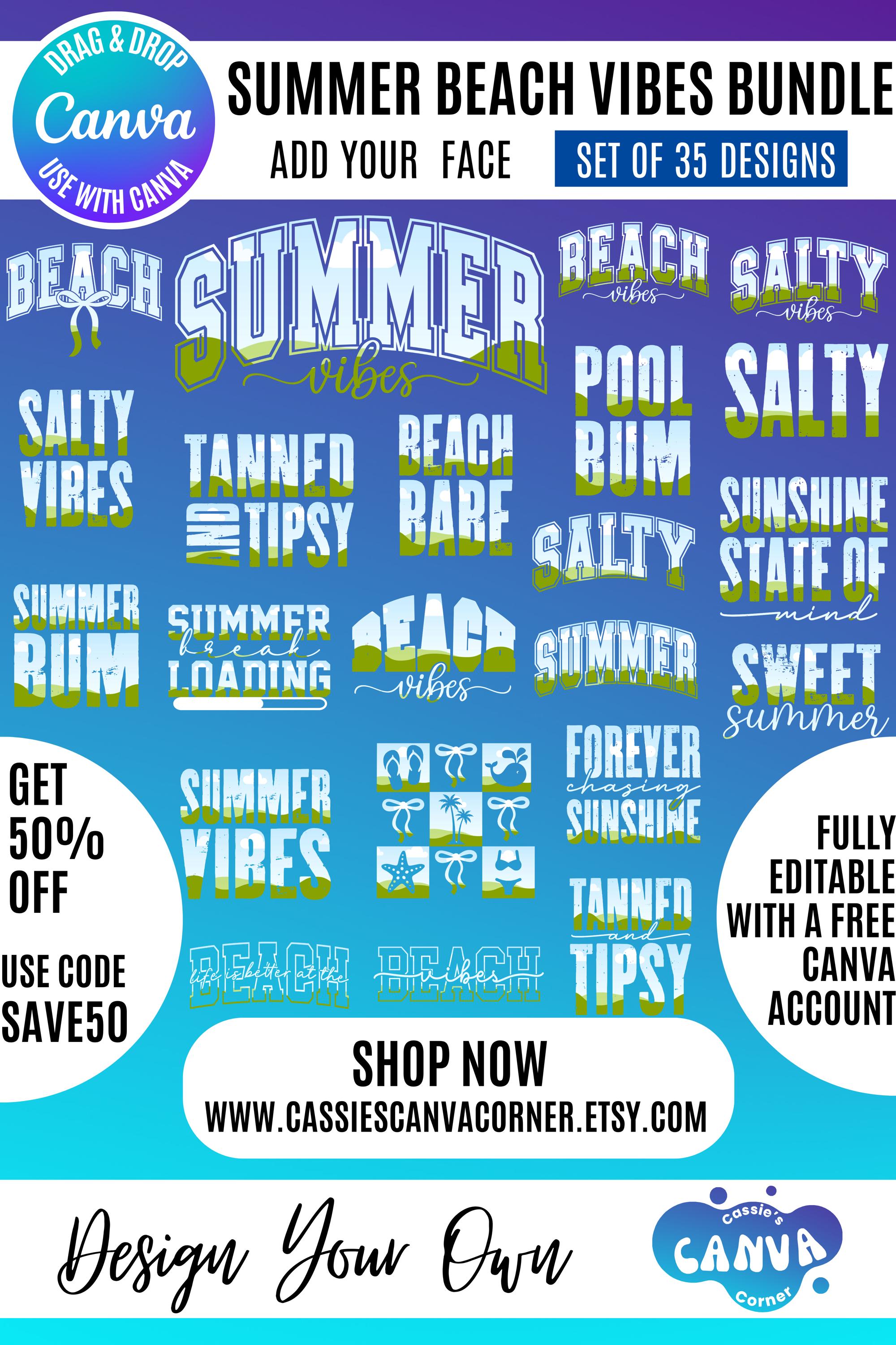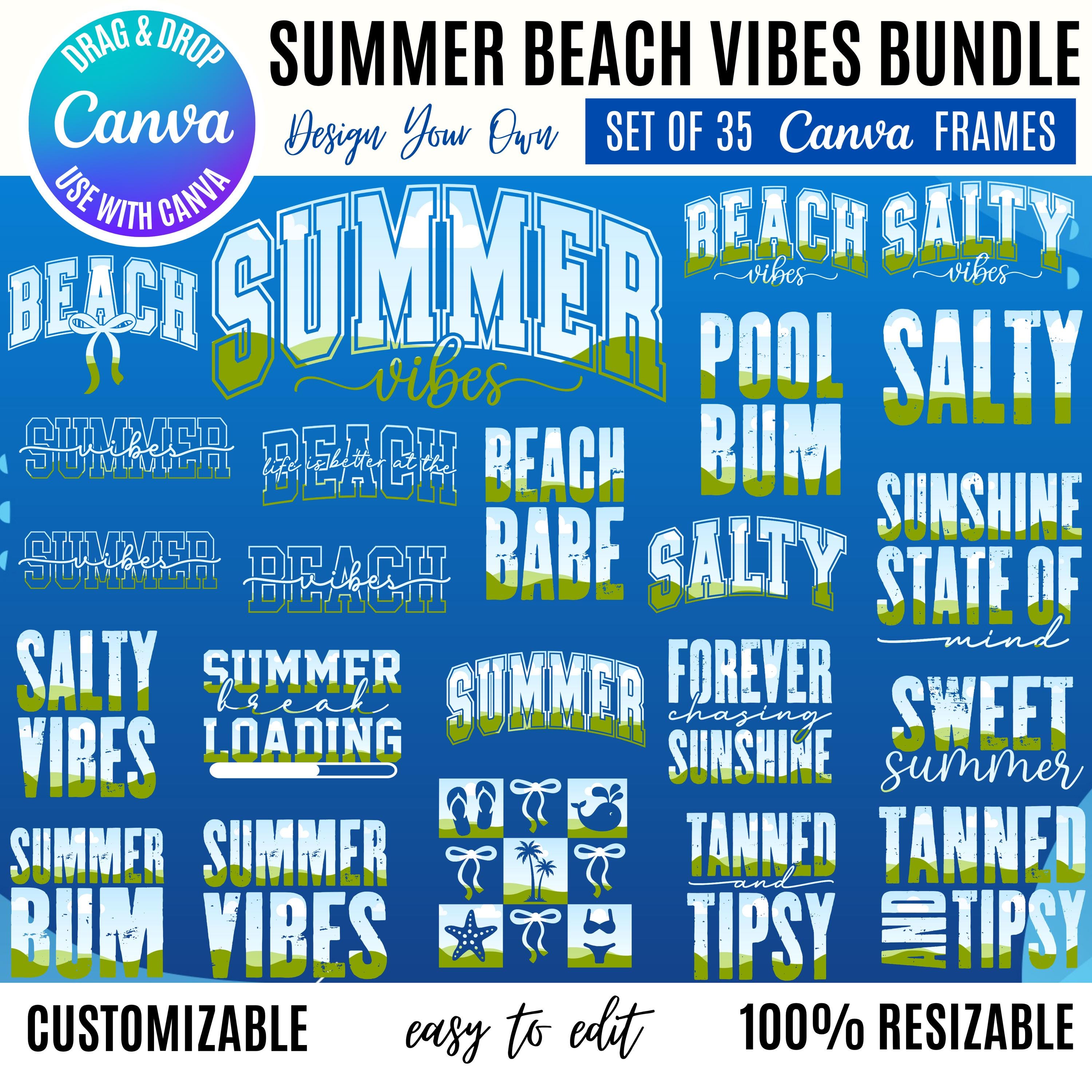 35 Summer Canva Bundle | Summer Vibes, Beach Vibes, Salty Designs | Editable Summer SVG PNG | Tropical Quotes, Vacation Shirts, DIY Printables