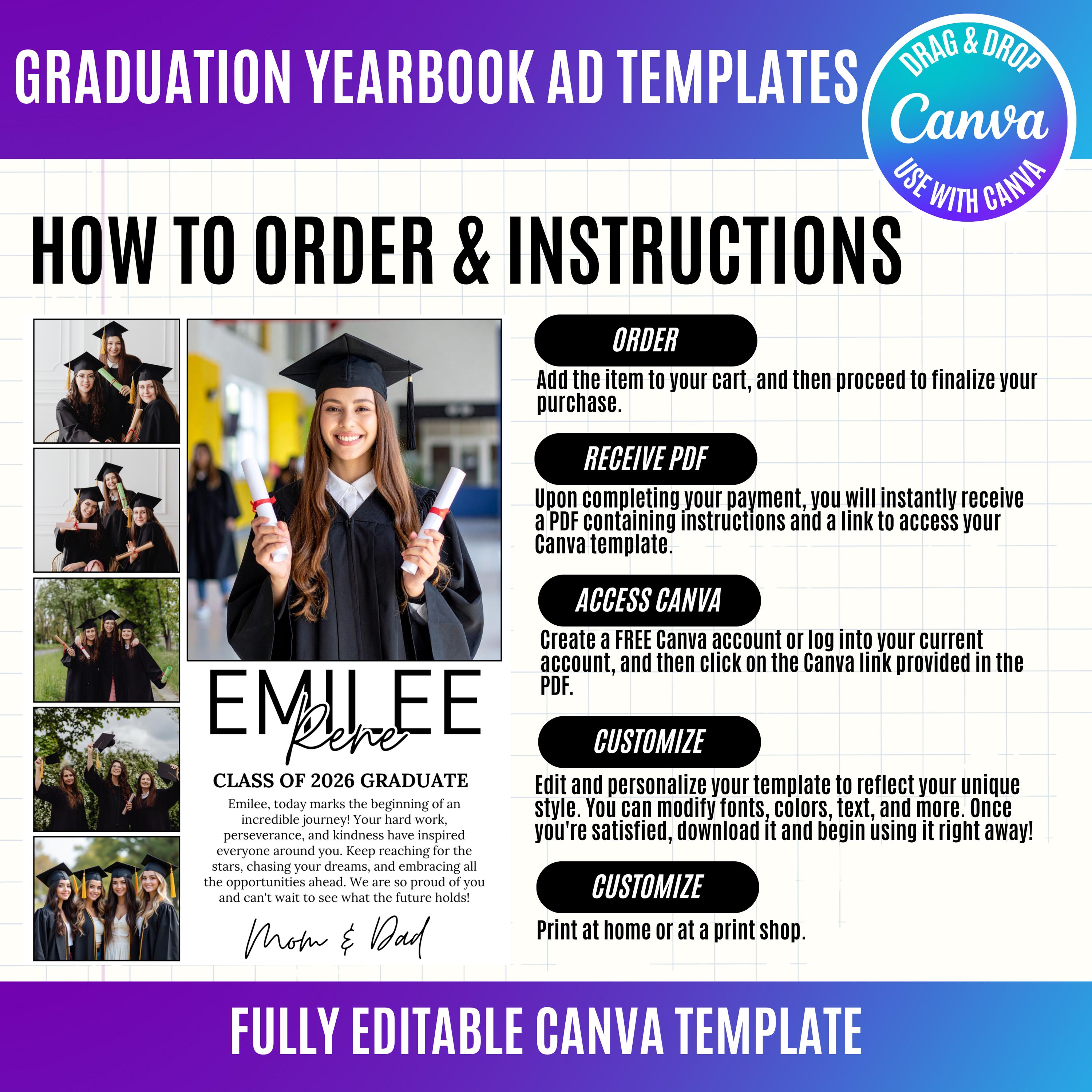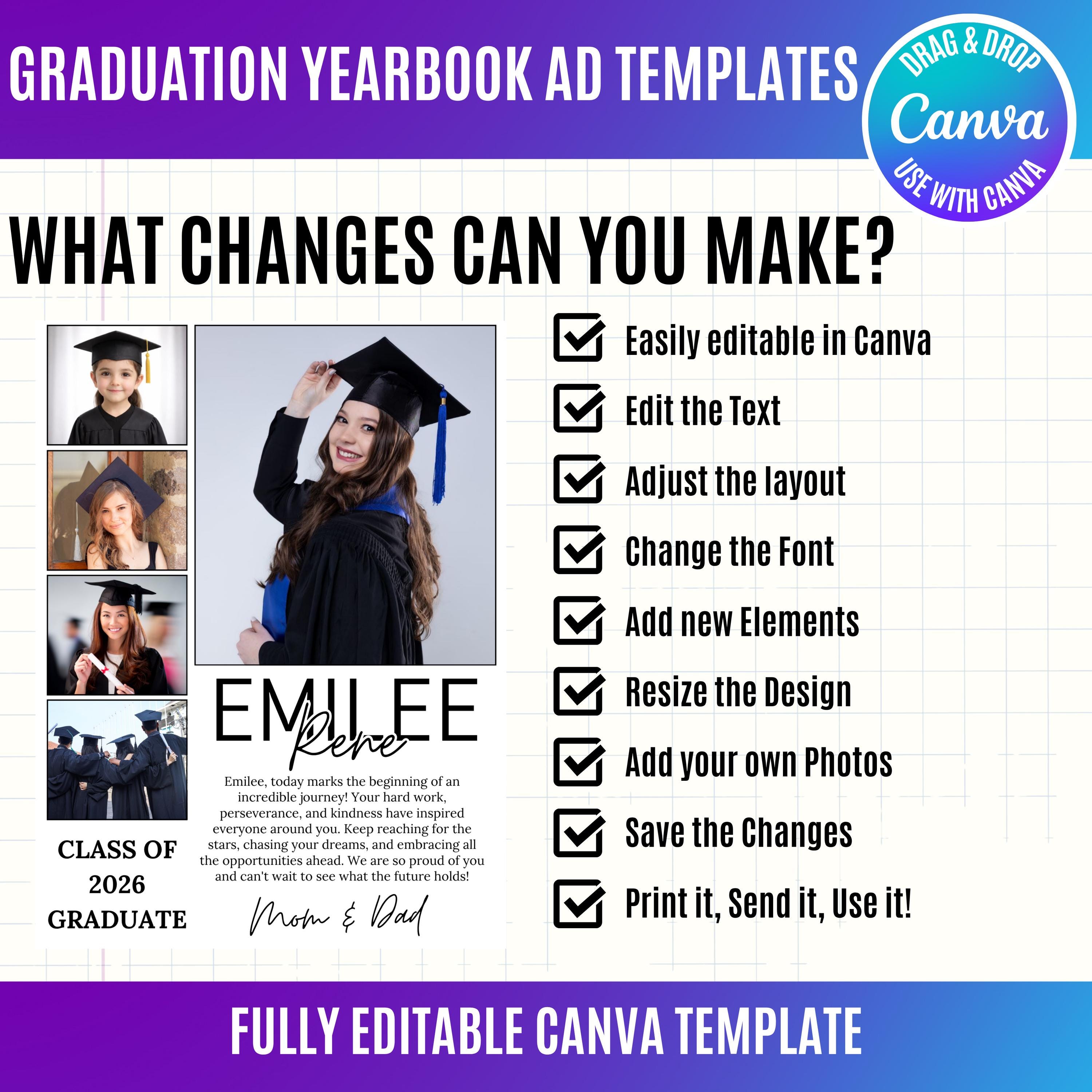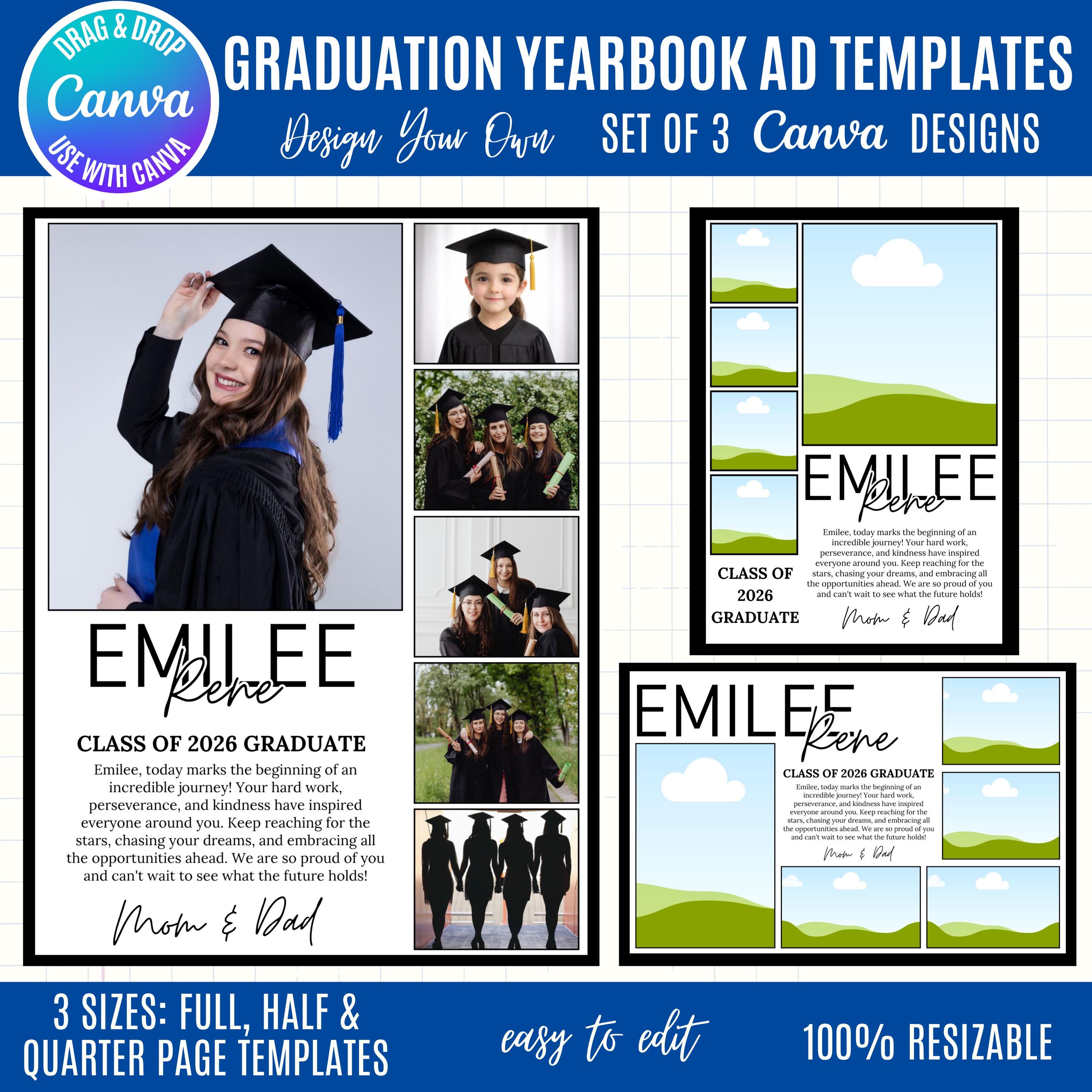 Canva Graduation Yearbook Ad Templates, Full, Half & Quarter Page Canva Templates, Senior Yearbook Tribute Ad, Editable Graduation Ad 2026