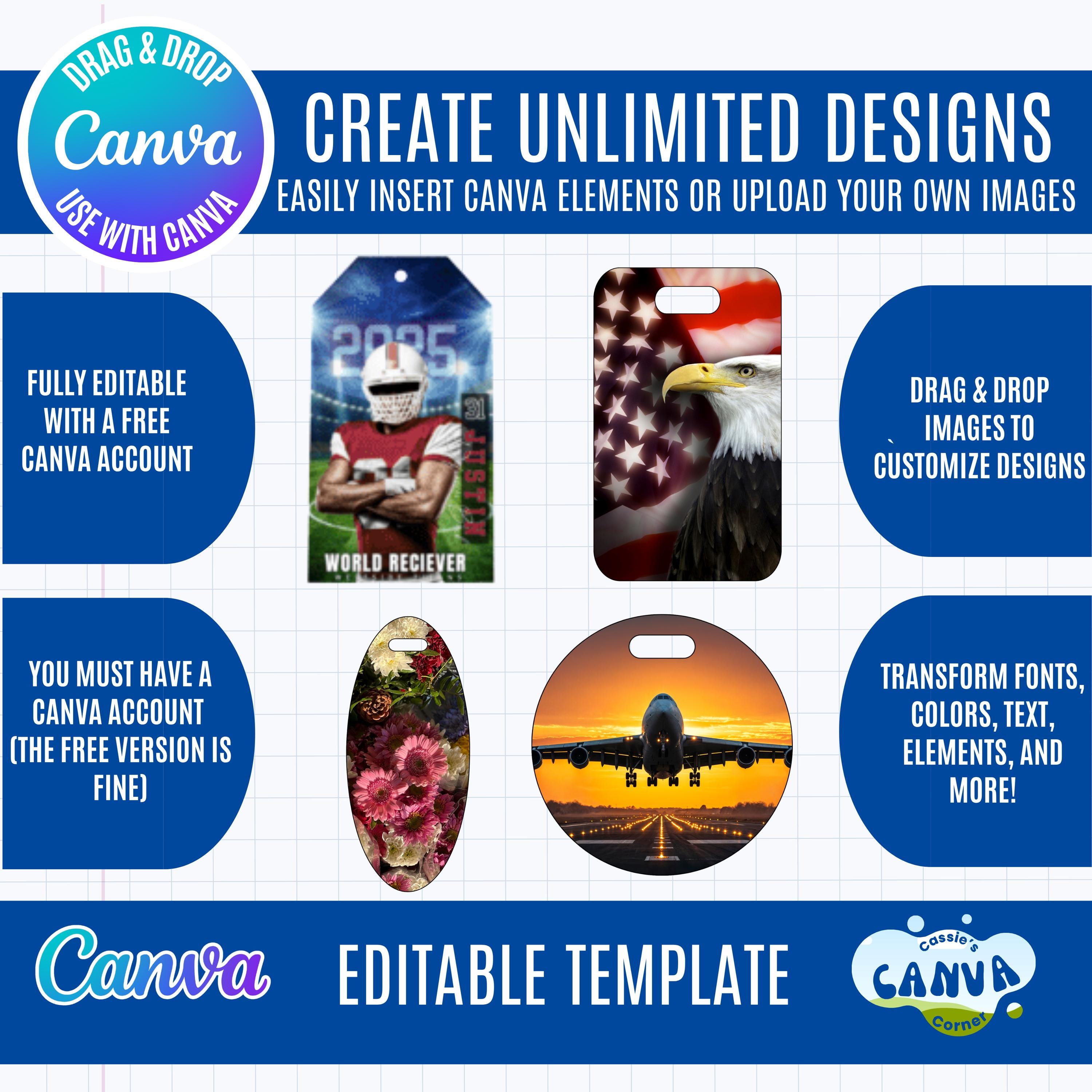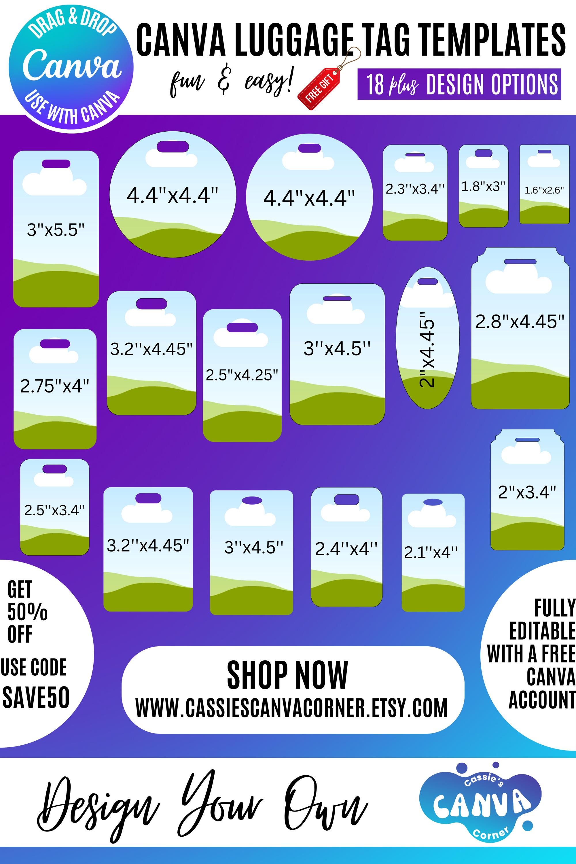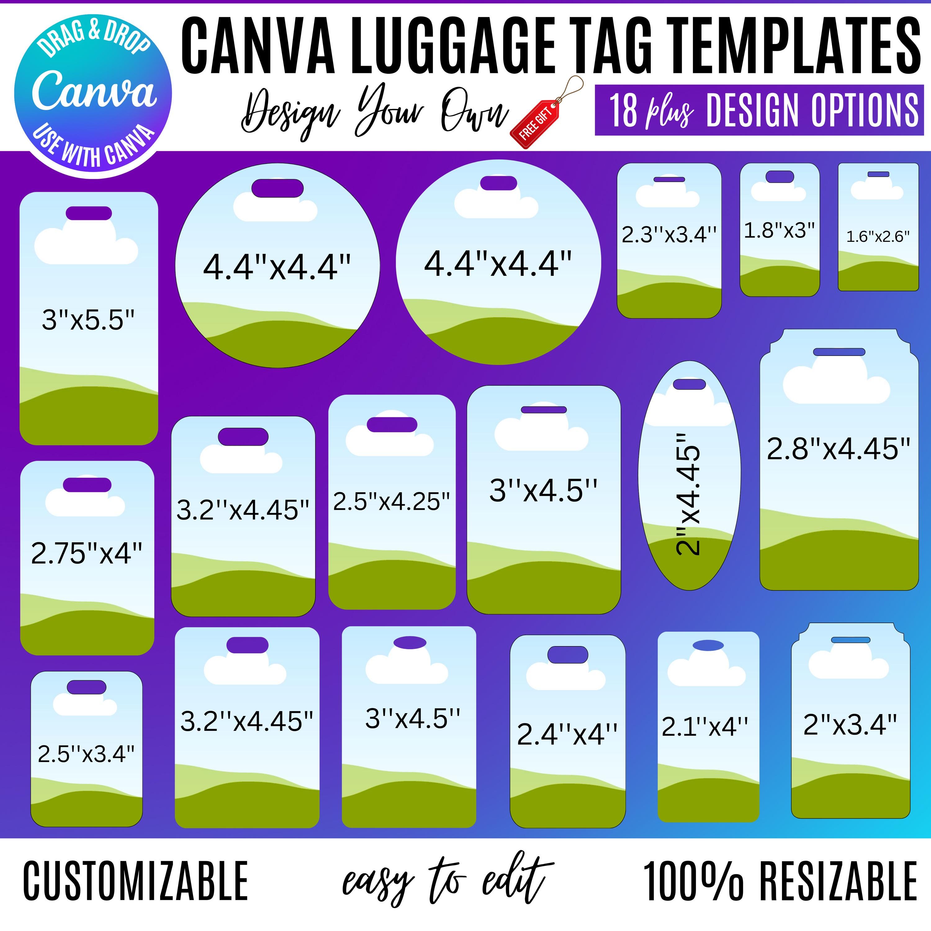 Canva Luggage Tag Bundle | 20+ Editable Tag Designs & Sizes | Printable Travel Tags, Name Tags, Sports Bag Tags, Gift Tags | Instant Download Luggage Tag Template, Work Badge Tag, Canva Editable Travel Tag, Personalized Luggage Tag, Luggage Tag
